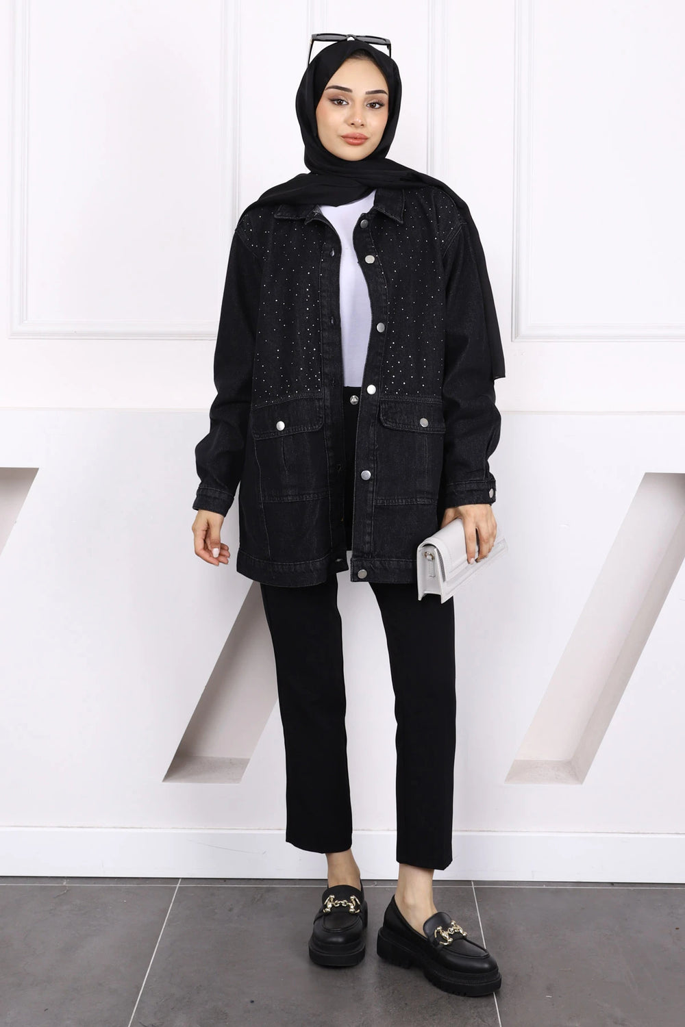 Ürün Detayı: Ön kısmında düğme ve taş işlemeler yer almaktadır. Cep kısımları mevcuttur.