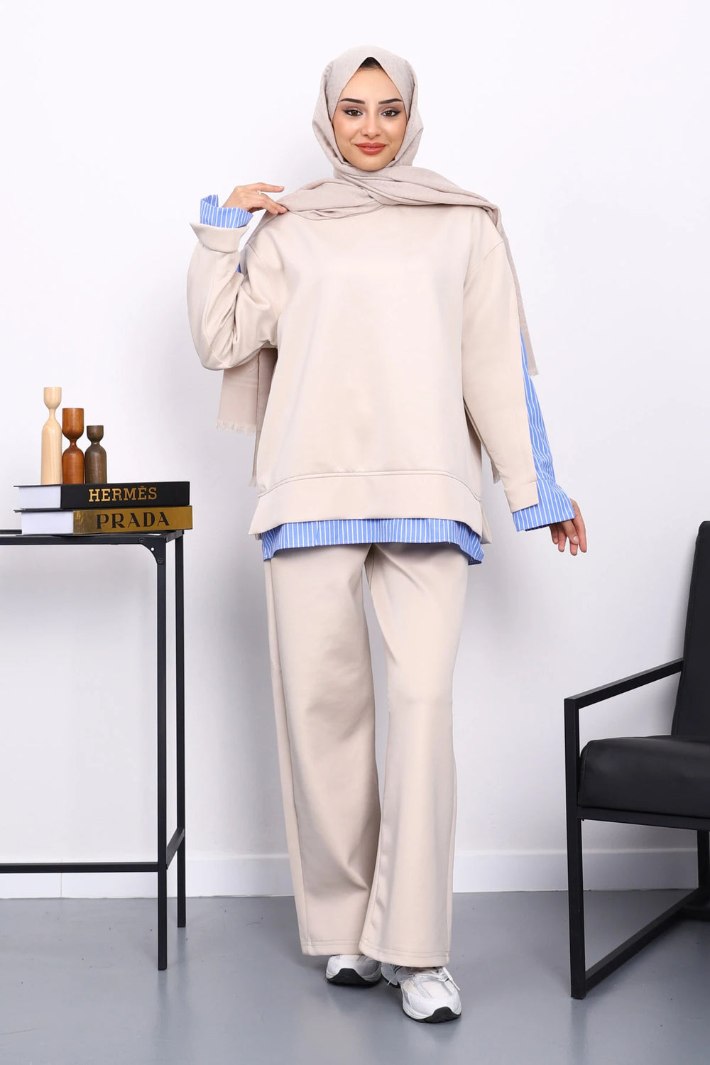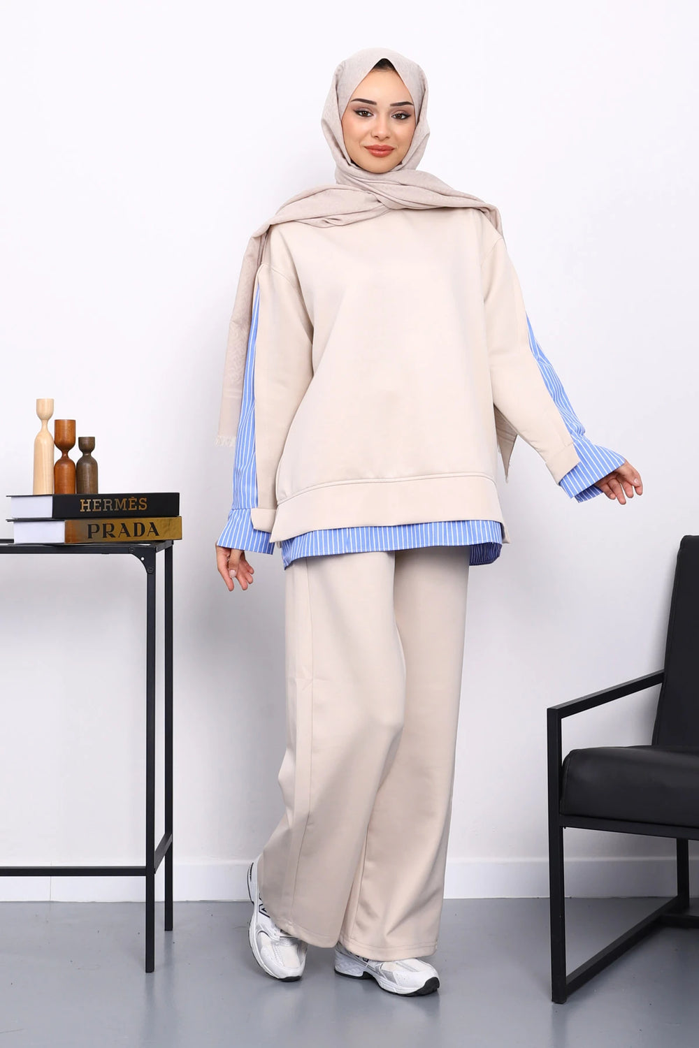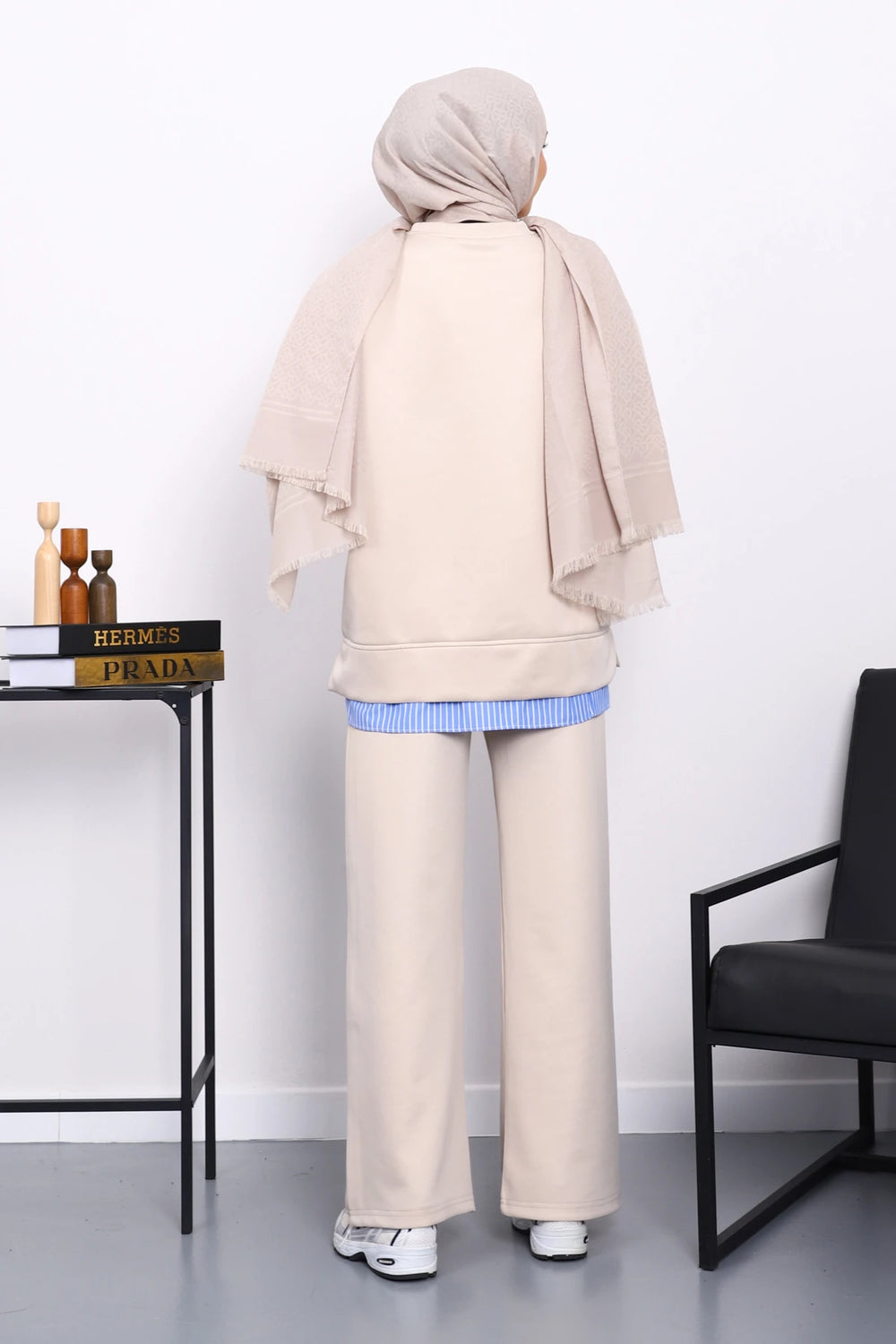 Zarif detaylarıyla hem günlük hem de şehir stiline uyum sağlayan bu takım, modern ve rahat bir görünüm sunar. Regular kalıbı sayesinde konforlu bir duruş sağlarken, fitted siluetiyle vücuda hoş bir form kazandırır. Gömlek detaylı üst kısmı ve düz pantolonu ile sade ama şık bir kombin oluşturur. Dayanıklı 2 iplik dokuma yapısı uzun ömürlü kullanım sunarken, poliamid kumaşın hafif ve esnek yapısı gün boyu rahat hareket etmenizi sağlar. Bisiklet yaka detayı ise modern bir dokunuş katar.